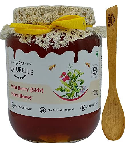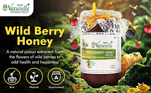 Farm Naturelle- Wild Berry Flower Wild Forest Honey | 100% Pure, Raw Natural Un-Processed - Un-Heated Honey | Lab Tested Honey In Glass Bottle-850gm+150gm Extra and a Wooden Spoon.