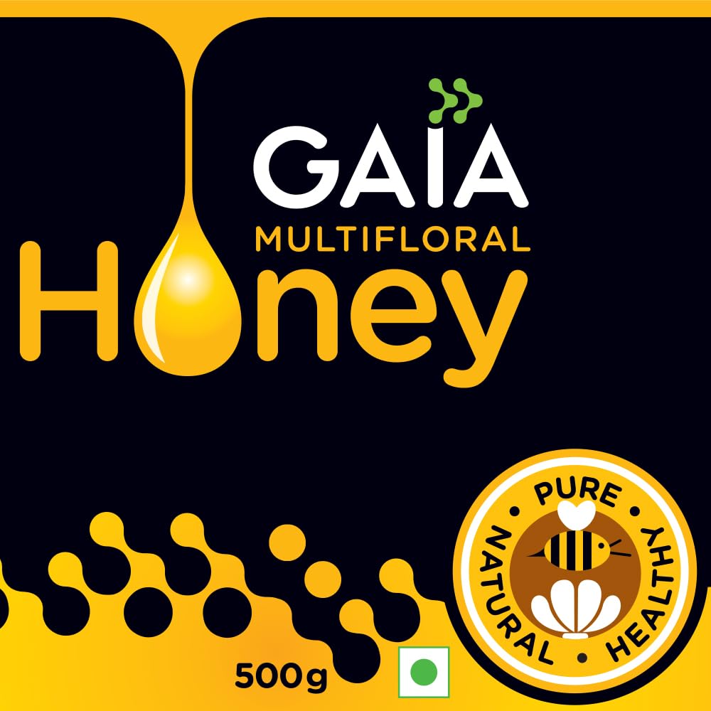 GAIA Multi Floral Honey - 100% Pure & Natural Honey | No Preservative | No Artificial Color | No Sugar Added | Boosts Immunity | Used to Cure Cold or Cough | Anti-oxidants | Weight Loss 500 GM Bottle
