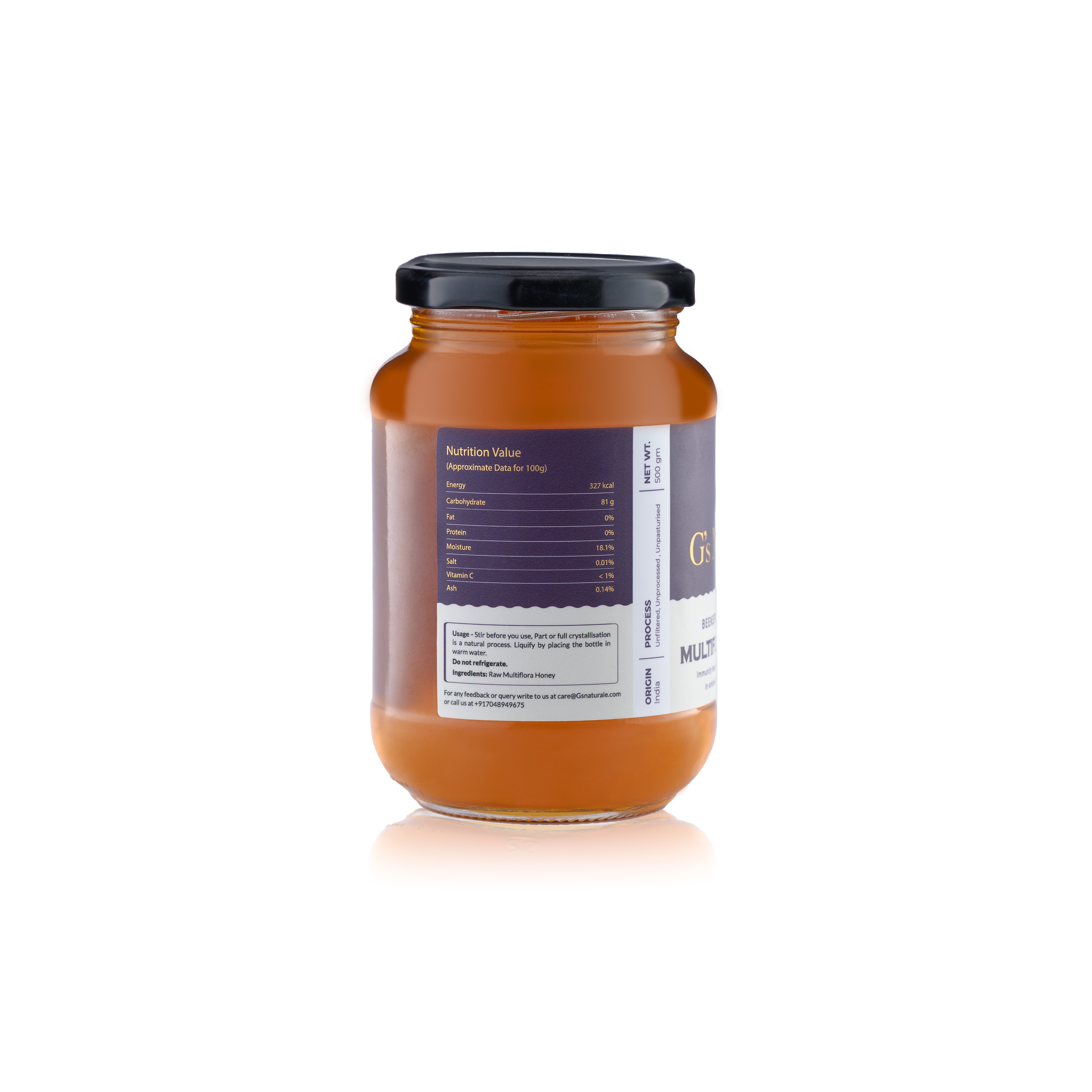 Multi floral honey contains pollens from multiple flowers of different breeds. A potent source of vitamins, minerals, and enzymes, Honey aids digestion, cell regeneration, and many other vital functions. Natural bee pollen from organic farms is extracted into Multi Flora, which is naturally sweetened and non-toxic. The product is used as a natural energy booster and can also be substituted for sugar.