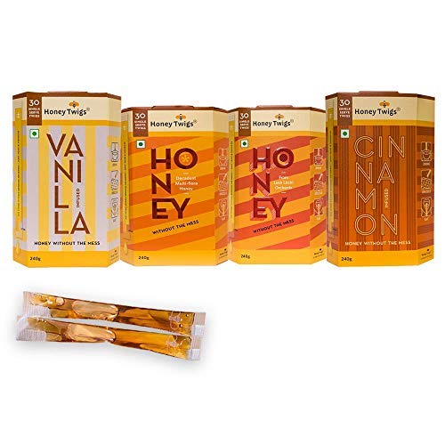 Honey Twigs Natural & Pure Honey - Himalayan Honey Litchi Honey Cinnamon Honey Vanilla Honey Combo 960gms ( 240gms x 4 Packs - 120 Sachets) | 100% Traceable Source | Infused with Natural Concentrates | Zero Additives | Zero Added Sugar | For Enhanced Immu