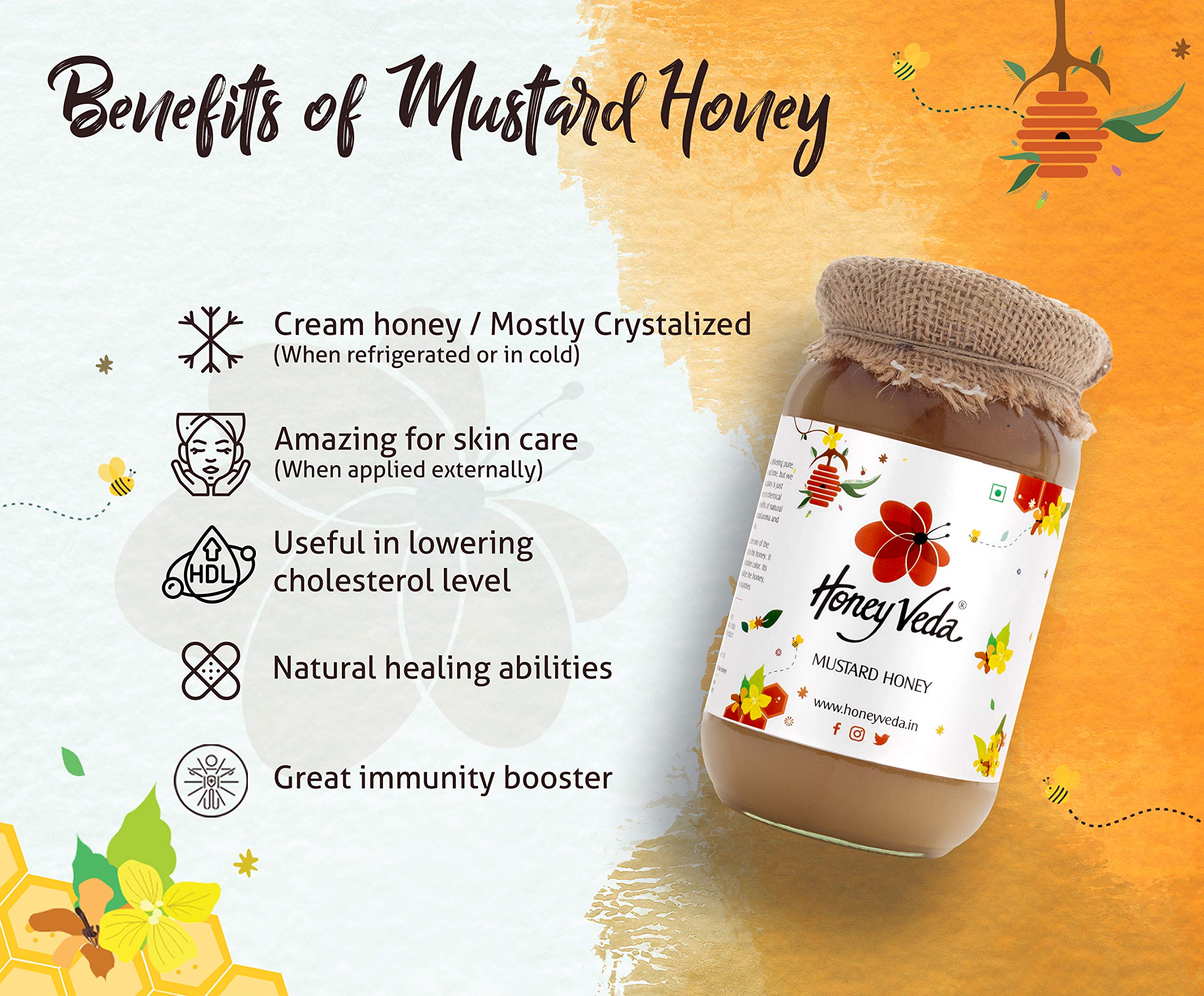 HoneyVeda is committed to bringing you raw natural honey. The monofloral honey you get from us is rich in natural antioxidants minerals and a whole lot of enzymes and vitamins. Thatâs because we are passionate about getting you the best quality honey. We work across farms in various Indian states including Gujarat Madhya Pradesh Uttar Pradesh Uttarakhand Jammu & Kashmir and so on. As a result we can bring you authentic and the best monofloral honey of a wide range. We make sure that every jar of honey you get from HoneyVeda is healthy tasty and nutritious. And for that we do a lot of things. We train our farm teams and keep them updated about farm management and beekeeping best practices. Our teams fully understand the importance of every stage of beekeeping honey harvesting and packaging. We follow rigorous hygiene standards when it comes to supplying 100% natural honey to our valuable customers. We love it when you can enjoy the benefits of pure unprocessed honey with all its vitamins and amino acids intact.Product Description