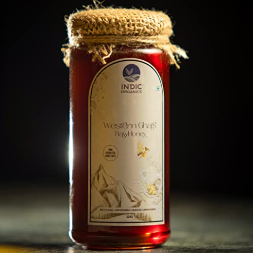 Indic Organics Western Ghats Raw NMR Tested Honey | Unprocessed Unheated & Unpasteurized | NMR Tested at IISc Bangalore (Wild Forest 320 Gm)
