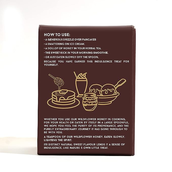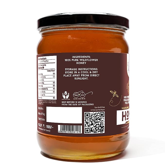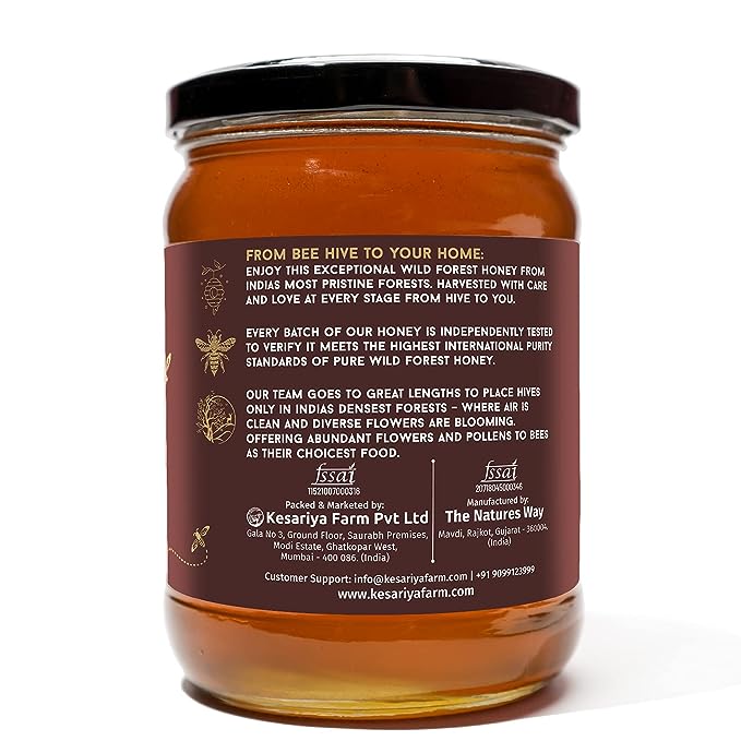 Kesariya farm Wildflower honey is not heat-treated to keep its original nutritional value intact. Raw honey collected from pristine forests contains higher amounts of antioxidants, antibacterial and health promoting constituents compared to normal honey.It is 100% free from any additives, preservatives.