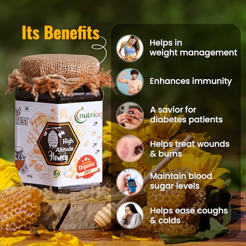 Nutriorg Certified Organic High Altitude Honey 500g | 100% Pure, Unadulterated, and NMR Approved | Raw Himalayan Honey for Weight Management, Energy Boost & Immunity | No Added Sugar | Natural Sweetener