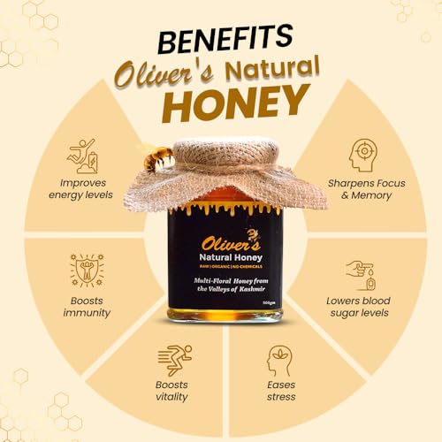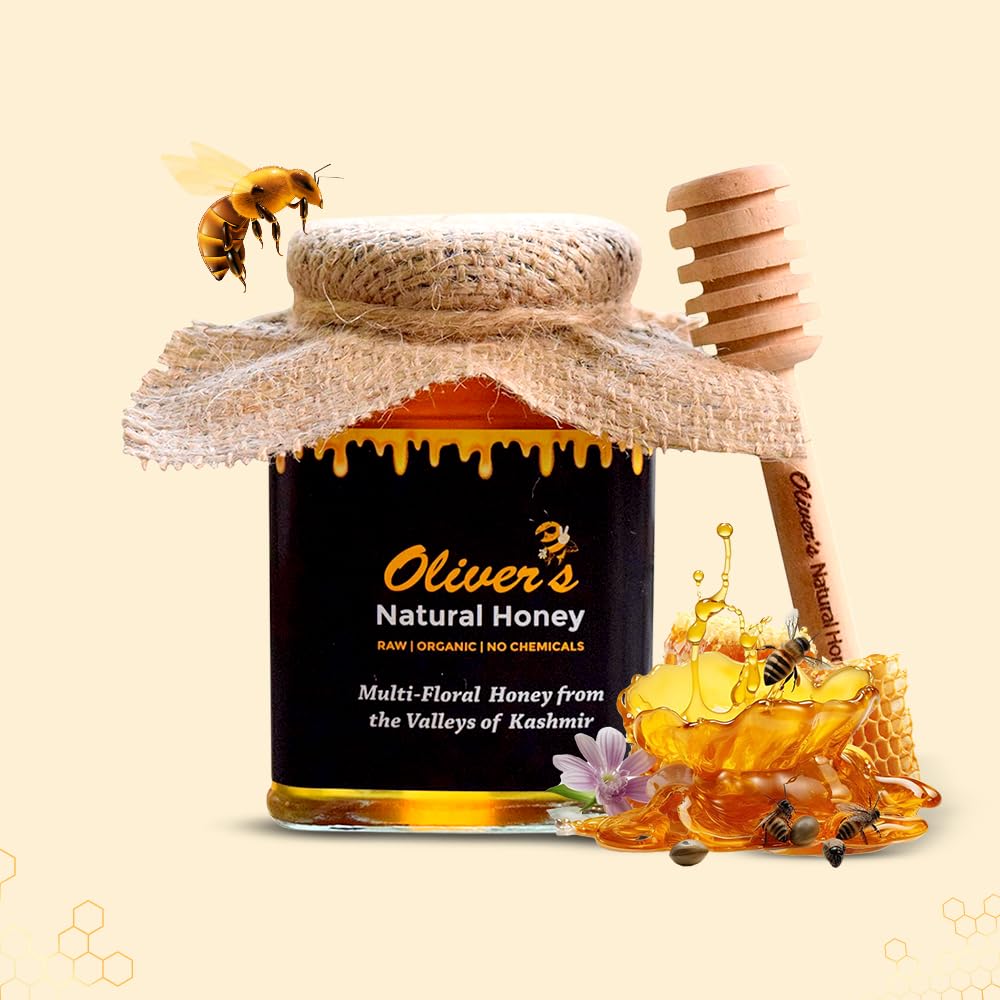 Apis mellifera bees make this honey from the exotic Himalayan flowers of Kashmir. It Is harvested from the mountains surrounding the valleys of Kashmir giving the honey a very pleasant and unique taste. Oliver's Natural Honey is ethically sourced. We conserve honey bees in scientifically designed wooden boxes called honey beehives. These boxes (beehives) are designed as like honey bee's natural habitat. Honeybees collect nectar from flowers and produce honey. Honey obtained from honey bees which is highly nutritious and laden with numerous medicinal properties. It contains all naturally occurring antioxidants pollen enzymes vitamins and natural minerals. We ensure that process followed by our team is in compliance with good beekeeping practices (GBP) by national bee board (NBB). Our team is experienced and well trained in process of extraction of raw honey. The latest method and techniques are used to perform the extraction process of raw honey from the comb so honey bees do not hurt and we also get the best raw honey. We also pride ourselves by keeping healthy honey bees. Our honey is appreciated by our clients for its quality. The location of an apiary (production site) is also miles away from the industrial area where our honeybees can forage on multiple floral sources; Indigenous Honey is 100% pure NMR tested natural and organic honey. It's a raw unfiltered unprocessed and unpasteurized honey which is natural immunity booster as per Ayurveda. We guarantee that no value is taken out and cane sugar corn sugar or anything ever added in our raw honey. Oliver's Natural Honey means honey as it exists in the beehive or as obtained by extraction settling or straining. It is not heated during production or storage as heating destroys the natural enzymes and nutrients of honey. Oliver's Natural Honey has its own uniqueness that makes it delicious and tempting. The consistency is very smooth and taste so unique that you will always crave for more.