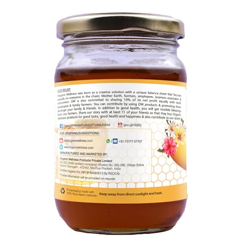 Organic Wellness Honey Bottle| Raw Organic Honey | Raw & Natural | No Added Sugar | Unprocessed Unpasteurized - 350 Gram (Pack of 1)