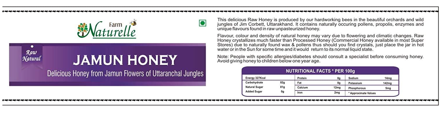 Farm Naturelle Jamun Flower Honey - 100 % Pure Raw & Natural - 400 GR (14.10oz)
