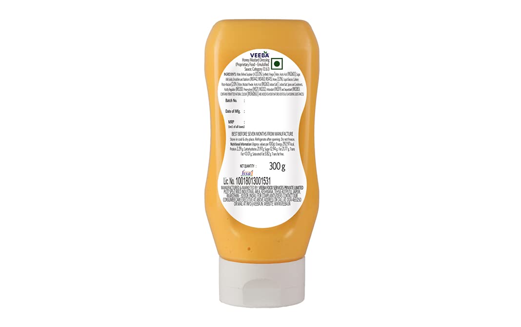Veeba Honey Mustard Dressing has become a favorite addition to my salads. This dressing strikes the perfect balance between sweetness and tanginess, enhancing the flavors of any salad creation.Sweet and Tangy Harmony:The delightful blend of honey and mustard in Veeba Honey Mustard Dressing creates a harmonious flavor profile. It adds a burst of sweetness and tang that elevates the taste of salads, making each bite a delicious experience.Versatile and Creamy:This dressing is incredibly versatile, pairing well with various salads. Whether it's a simple green salad or a more complex dish, the creamy texture of Veeba Honey Mustard Dressing coats the ingredients perfectly, ensuring a luxurious mouthfeel.Convenient and Fresh:The squeeze bottle design of Veeba Honey Mustard Dressing allows for easy and controlled pouring. It keeps the dressing fresh and ready to use whenever I need it, making it a convenient choice for my salads.Quality Ingredients:Made with high-quality ingredients, Veeba Honey Mustard Dressing delivers exceptional taste. The carefully blended honey and mustard create a well-rounded flavor that elevates the overall salad experience.Conclusion:Veeba Honey Mustard Dressing is a must-try for salad enthusiasts seeking a perfect balance of sweetness and tanginess. Its versatility, creamy texture, and convenience make it a go-to dressing for enhancing salads. Add Veeba Honey Mustard Dressing to your salads and elevate your taste buds to new heights of salad perfection.