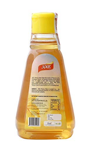 JAGS Kashmir Honey comes from the nector of flowers in the Himalayan forests of Kashmir bearing Acacia Karoo tree. It is light in color mild sweet taste natural pure unadulterated and is 100% free from preservatives full of natural nutrients. Kahmir honey is must in your kitchen as it is a healthy food. if youre ready to incorporate JAGS Kashmir honey into your diet then check out these benefits. Improve digestion Use a tablespoon or two to counteract indigestion since it doesnt ferment in the stomach. Relieve nausea Mix our Kashmir honey with ginger and lemon juice to help counteract nausea. Acne cure It can be used as an affordable face cleanser to fight off acne gentle on sensitive/all skin types. Take half a teaspoon warm between hands and spread on face gently leave on for 10 minutes then rinse with warm water and pat dry. Exfoliator Honey makes a great exfoliator! Use honey on dry winter skin by adding two cups of honey to a bath soak for 15 minutes then add one cup of baking soda for the final 15 minutes. Improve diabetes Consumption of JAGS Kashmir honey can reduce risk of developing diabetes and help aid medication used to treat diabetes. JAGS Kahmir honey increases insulin and decreases hyperglycemia. Add a little at a time and see how your blood sugar reacts to it. Lower cholesterol It can help reduce cholesterol and therefore decrease your risk for coronary artery disease. Improve circulation JAGS Kahmir honey makes your brain function optimally by strengthening the heart and improving blood circulation. Antioxidant support Consumption of JAGS honey increases plaque-fighting antioxidants. Restore Sleep JAGS Kashmir honey promotes restorative sleep. Add a tablespoon to warm milk to help increase melatonin and help you sleep. Pre-biotic support JAGS honey is full of natural prebiotics which promote the growth of good bacteria in the intestine. Improve allergies JAGS Kashmir honey can help reduce seasonal allergies.