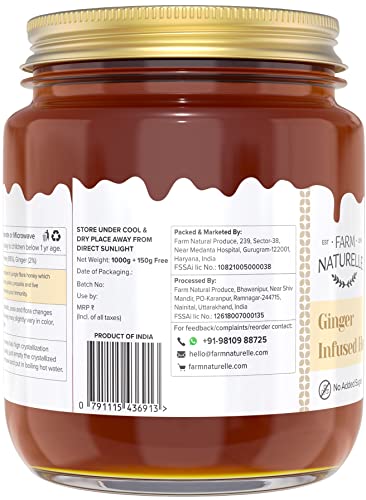 Real Ginger Infused 100% Pure Raw Natural Wild Forest Honey (1 KG Glass Bottle) -Immense Medicinal Value