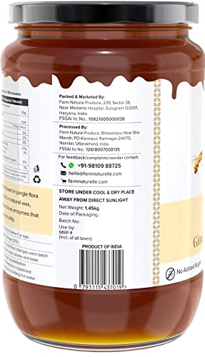 • Farm Naturelle - 100% Pure Raw Natural Bee Honey of Highest quality from the Foot Hills of Himalaya and Pristine Orchards of Uttaranchal. 100% Pure Raw Honey- Unpasteurized Unprocessed and Unheated. No added artificial flavour added sugars additives or co