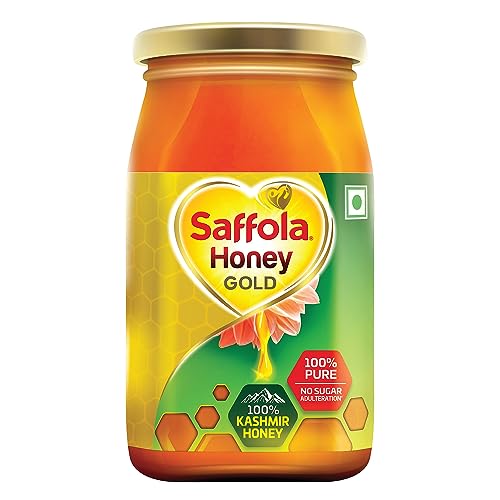 Honey is a natural food and comes with tons of uses and benefits and should be used in its pure form. Pure Honey is also a healthy alternative to sugar and is considered one of the most wonderful gifts that nature has ever gifted to mankind. However not all honey sold in the market are alike! Some are pure while others may be highly adulterated. As a consumer one needs to be watchful as adulterated honey comes with added glucose sugar syrup molasses corn syrup etc. Not every honey that reads pure necessarily stands true to its claim. A real sign of a pure honey is a product which is free from adulteration and which complies to all the FSSAI parameters. Saffola Honey Gold is natural honey in its purest form. It is multiflora Honey made using Kashmir Honey bringing the best quality to you. It is tested and approved after many rigorous quality checks. Each bottle of Saffola Pure Honey contains natural antioxidants has No Added Sugar and comes with a Purity certificate that is made available to its consumers.