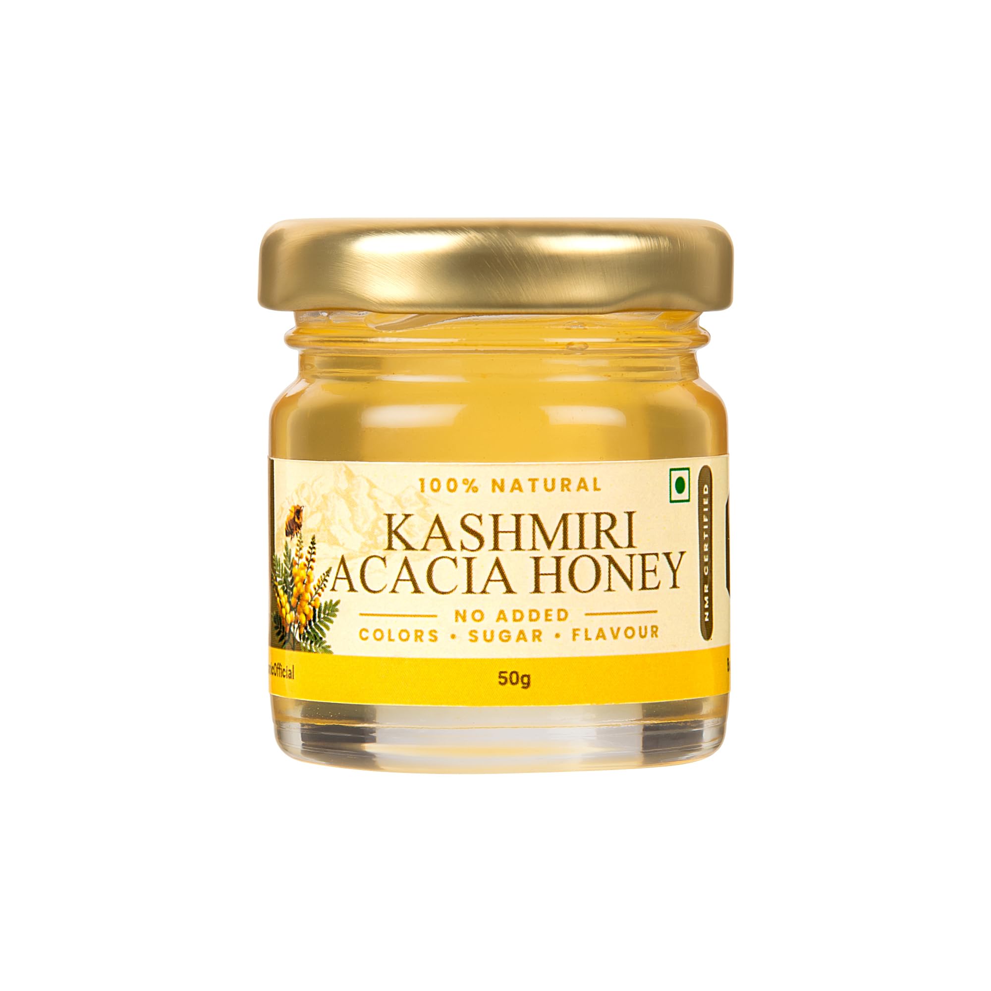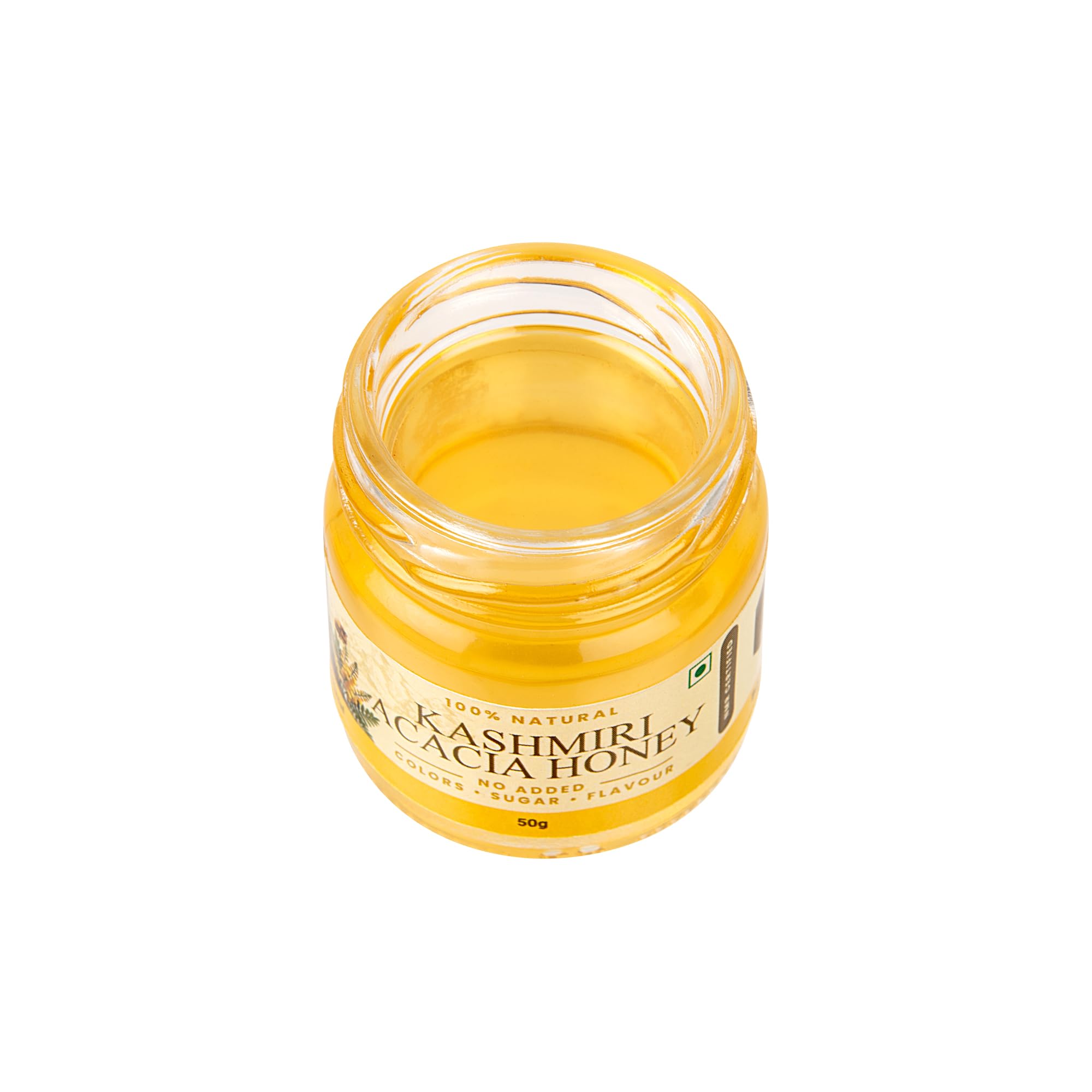 Shiva Organic Acacia honey is produced in the uncontaminated woods of kashmir where the plant grows luxuriantly and in the month of May it is covered with fragrant white flowers from which a precious nectar flows that bees collect and transform into excellent honey. Transparent Kashmir honey is a natural miracle known for its crystal-clear appearance and delicious taste. This honey shines because of its light golden color and subtle floral aroma. Its purity and clarity reflect the pristine beauty of its origin with a sweet mild flavour. Transparent Kashmir honey is not only a joy for the mouth but it also has a wealth of health advantages making it an ideal combination of nature's best offers. It is characterized by very delicate olfactory hints of sugared almonds and vanilla. Its taste is very sweet with a fresh sweet almond aftertaste. Acacia is by far the richest in fructose and the sweetest of honeys. Acacia honey has a very low sucrose content and a high fructose level so it tends to be the primary choice for diabetics. Kashmir Acacia honey often regarded as one of the finest varieties of honey boasts several special qualities: