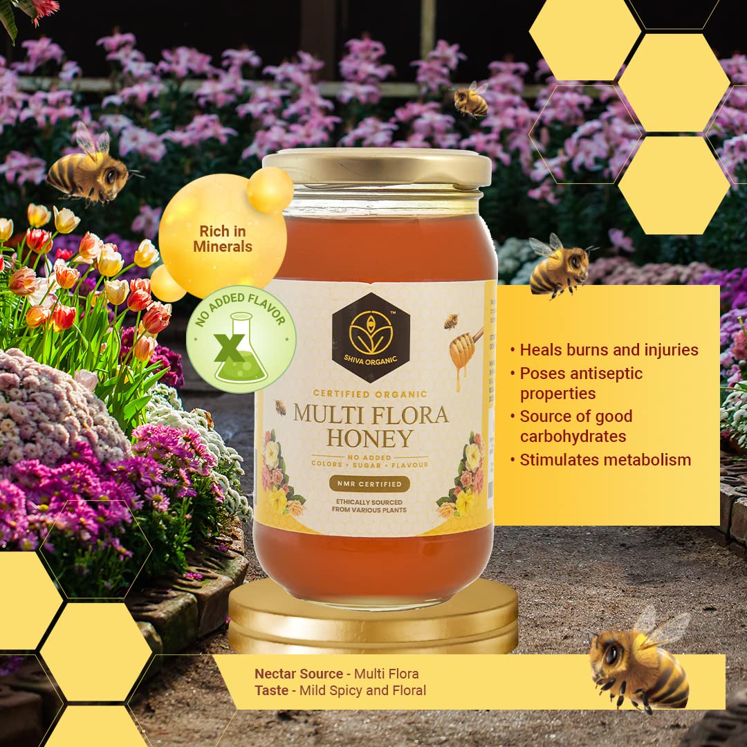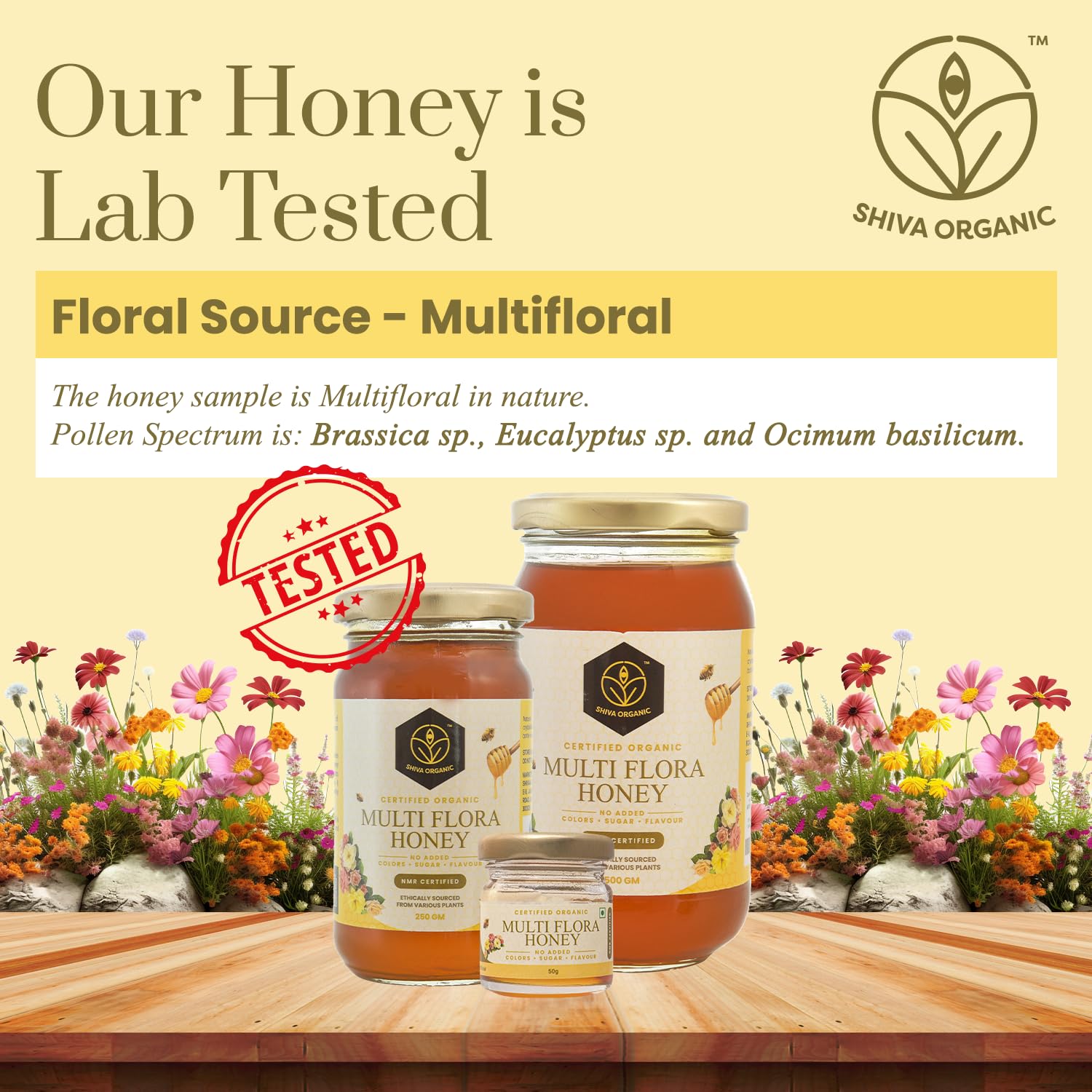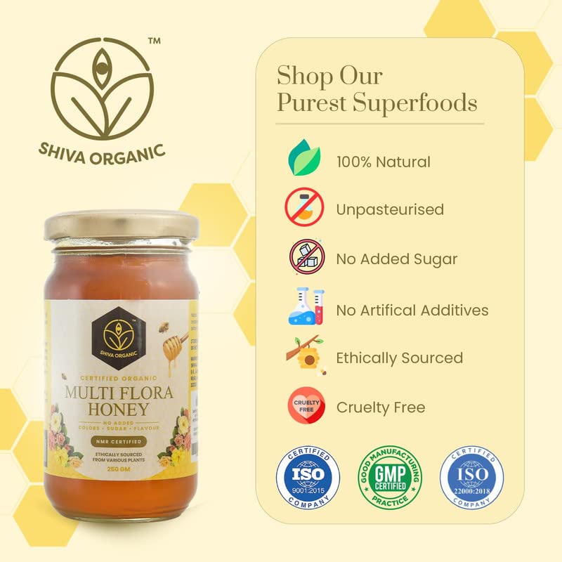 Shiva Organic Raw Multi Flora Honey 250g | 100% Pure NMR Tested | Raw and Unprocessed