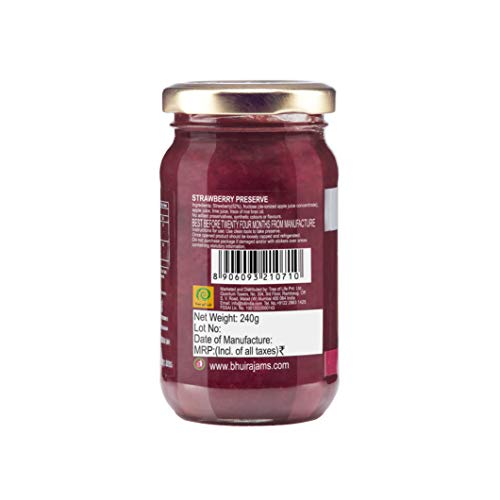 Bhuira|All Natural Jam Strawberry Preserve & Three Fruit Marmalade-240g each|No Added Sugar|No Added preservatives |No Artifical Color Added |Pack of 2