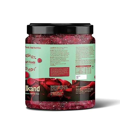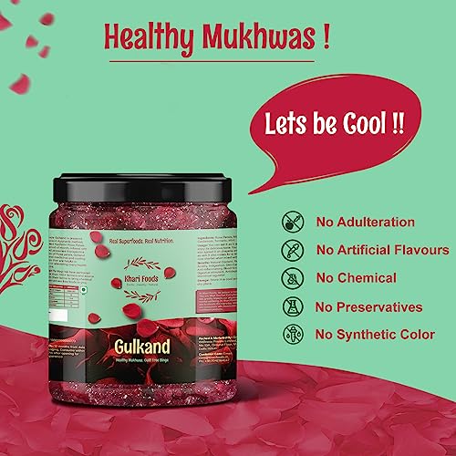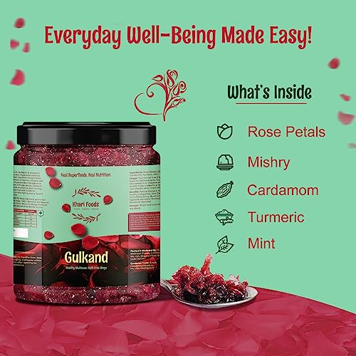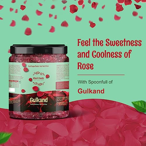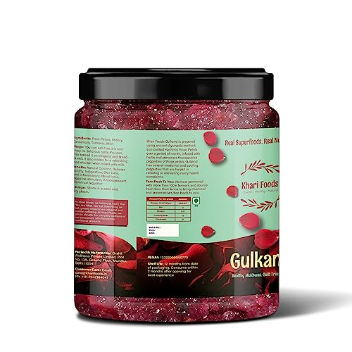 Khari Foods Gulkand is prepared using ancient Ayurveda method sun-cooked Kashmiri Rose Petals over a period of month infused with herbs and preserves therapeutics properties of Rose petals. Gulkand has several medicinal and cooling properties that are helpful in relieving or alleviating many health complaints. You can eat it as it is and enjoy its delicious taste. You can also spread it on chapatis and bread as well. It also makes for a refreshing rose sharbat when mixed with milk.