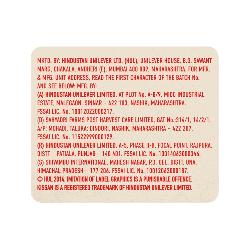 Kissan Mango Jam typically contains mango pulp sugar and pectin. It provides a source of carbohydrates and quick energy making it a delightful treat especially for kids.
