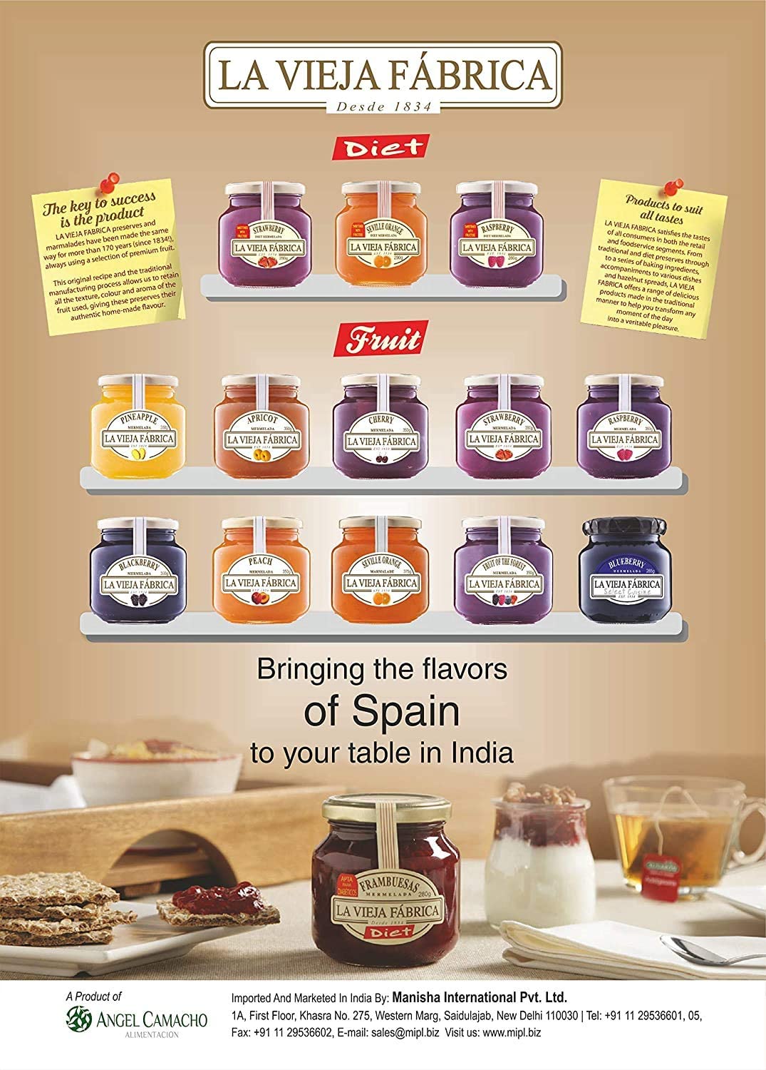 Enjoy La Vieja Fabrica fruit preserve. Which is a product of Spain made with 100 percent natural fruit and made in traditional style. Jams are with rich fruit flavours sugar free and gluten free
