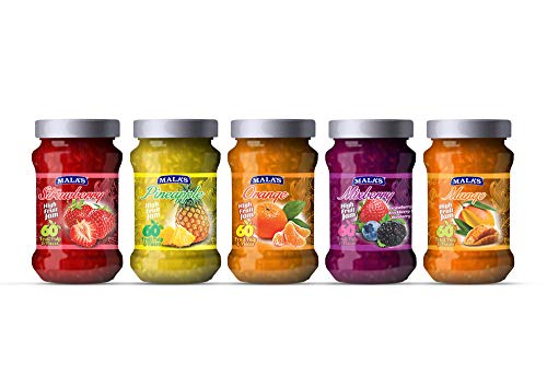 The Jam made in the hilly countryside where the berries are grown in our backyard to be processed into a fresh wonderful gourmet delights. Mala's High Fruit Jams are premium fruit spreads with 60% Fruit content which is made from fruit juices pulps & pieces for real fresh sweetness. The natural sweetness of fruits adds to the taste which is much fresher and more delicious than the heavy taste of sugar. A hearty delightful Fruit Spread for fruit lovers