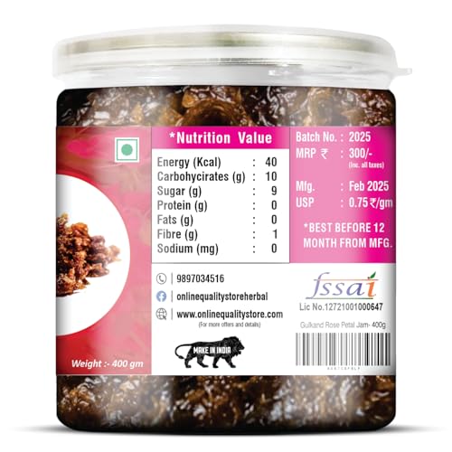 Online Quality Store Natural Gulkand (Rose Petal Jam), 400g | Sun-Cooked Damask Rose Petals & Rock Sugar |pure gulkand | Gulkand for Paan