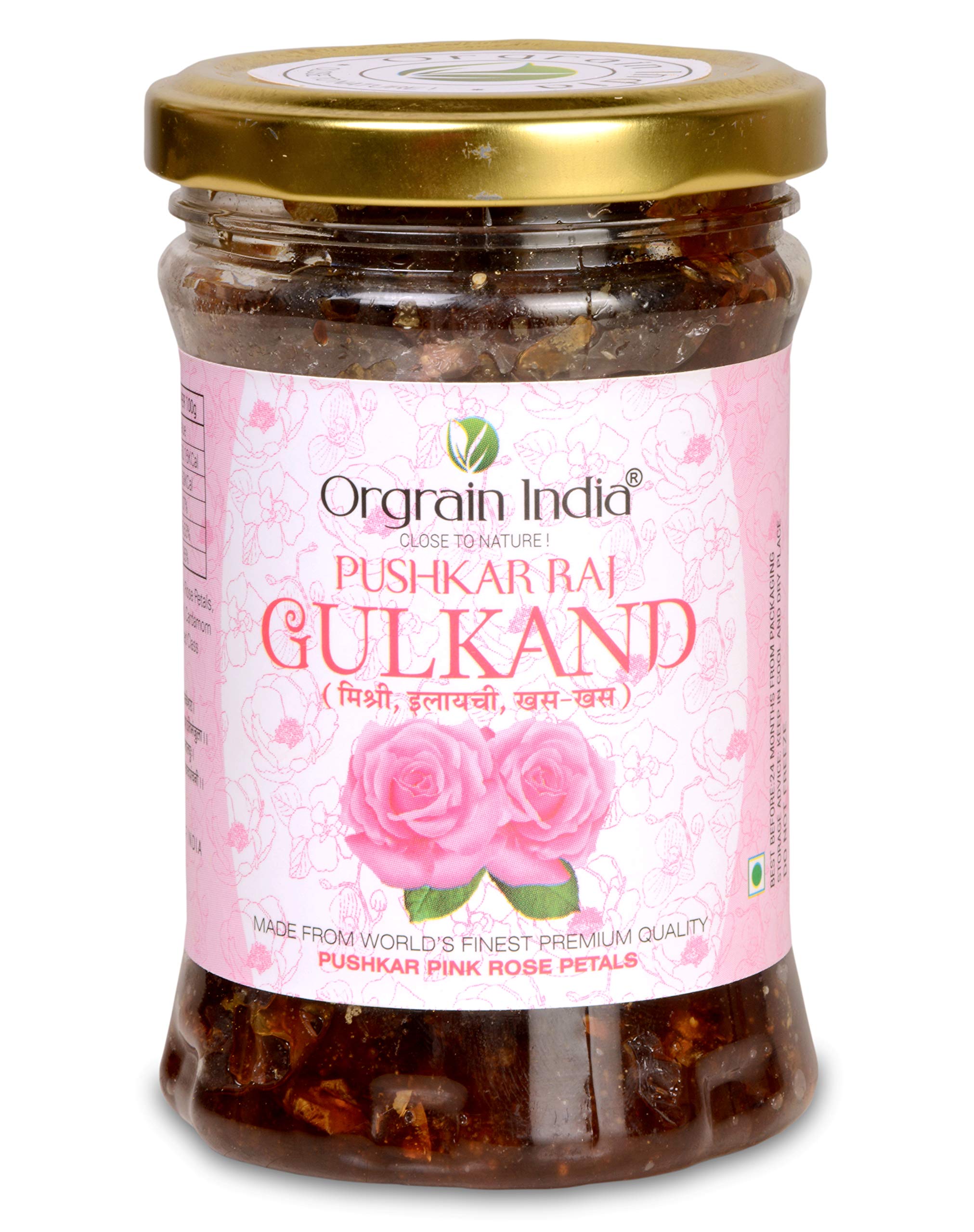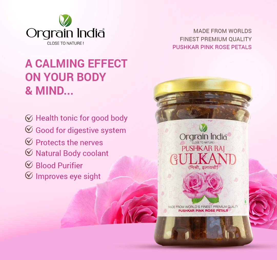 Orgrain India Gulkand helps alleviate many ailments caused by excess âpittaâ like hyperacidity prickly heat eye rashes/disorders etc. Itâs a general liver & muscle tonic and is also known to possess spermatogenic properties