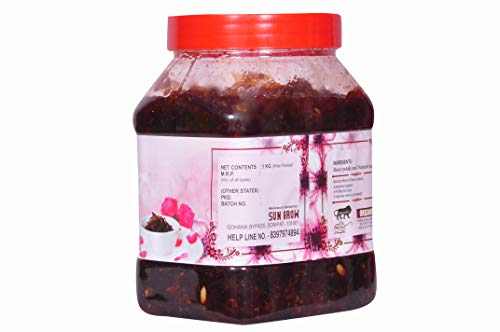 It's a hopeless and completely unsavoury gulkand I ever ate. It reeks of chemical taste. Besides there is so much syrup in it making half the weight. It's in not naturally made as being claimed and suspect it's process as industrial with chemicals. They also induce customers to give 5* to their product by promising cashback. I received a voucher saying that. So beware of the 5* ratings given It's a terrible product to conclude.