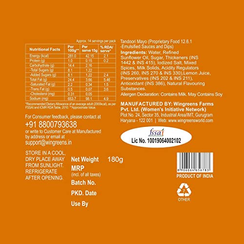 Wingreens Farms Tandoori Mayo is everything your sandwich or chip desires. Try our Tandoori Sauce with momos paranthas in sandwiches rolls burgers meats and vegetables. It actually makes for a surprisingly delicious dip for your fries and chips too.