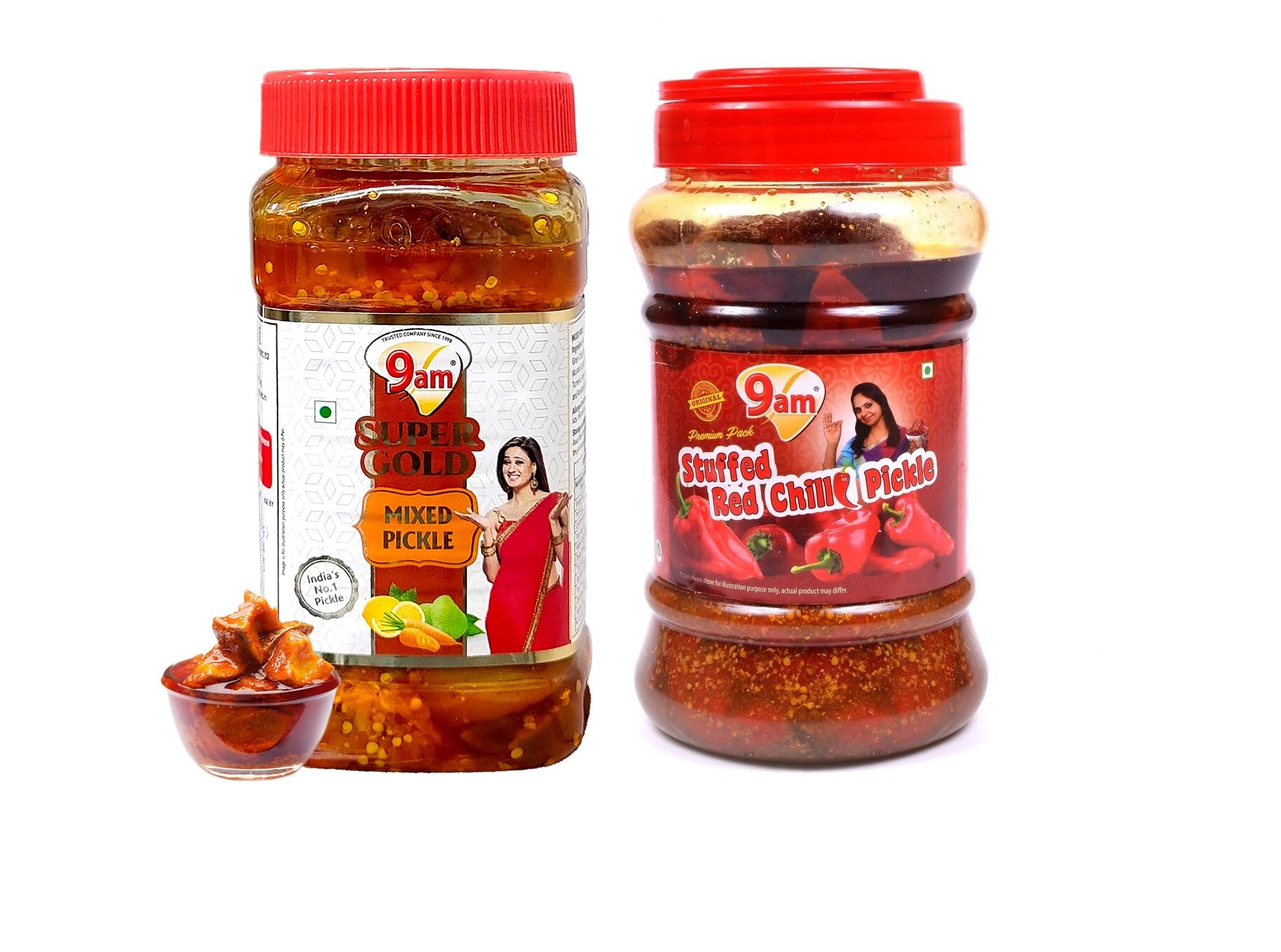 Our special 9AM homemade mixed pickles and chilli pickles are pure natural traditional-style pickles. Every single ingredient is carefully selected and manually checked for quality before being thoroughly washed dried and hand-cut into slices. The fresh spices we pick are also carefully measured for taste and consistency. This is one of the most popular and traditional pickles found in almost every Indian home.