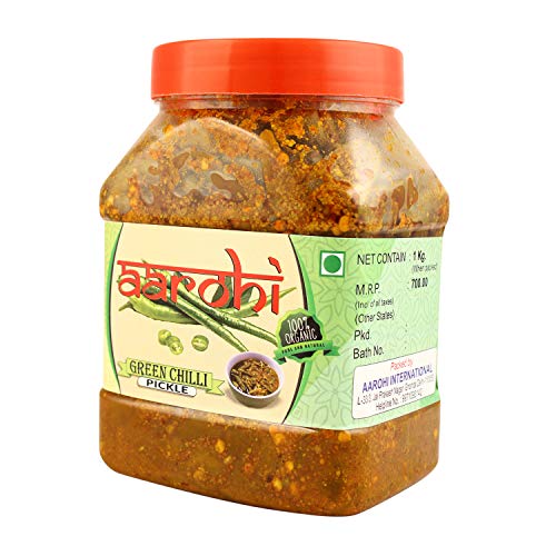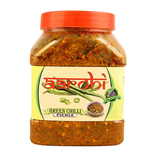 Aarohi Homemade Marwadi Rajasthani Green Chilli Pickle Hari mirch ka achar ( Without Oil ) 100% Pure All Natural (900 Gram)