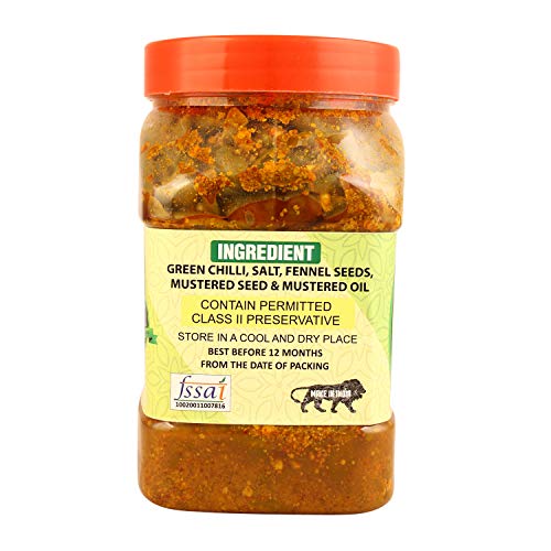 Aarohi Homemade Marwadi Rajasthani Green Chilli Pickle Hari mirch ka achar ( Without Oil ) (900 Gram)