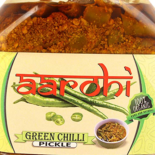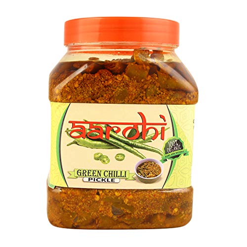 Aarohi Pure Natural Organic Green Chilli Pickle Homemade Tangy Mirch ka Achaar (Cold Pressed Oil No Additives No Preservatives) (900 Gram)