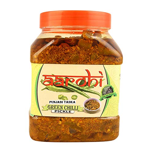 Aarohi Pure Natural Organic Home Made Hathon Se Bana Made in India Marwadi Rajasthani Hari Mirch Ka Achar Green Chilli Pickle (900 Gram)