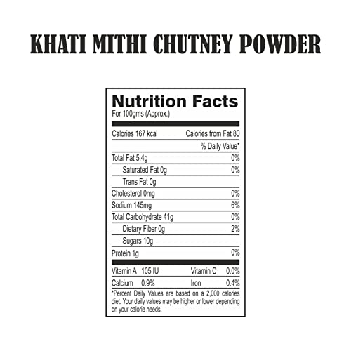 • Key Ingredients of Khati Mithu Chutney: Sugar Amchur Powder Kashmiri Red Chilli Powder Cumin Black Salt Salt Corn Flour.