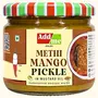 The recipe for this Methia Mango Pickle has been handed down generations. The real taste of coarsely ground methi and mustard comes out in this delicious Gujarati pickle. This Pickle is different from regular mango pickle. It is very delicious as it is prepared with soaked and dried whole methi (fenugreek), pickle spice and mangoes. Our pickles are completely natural, free, and prepared using authentic ingredients.
