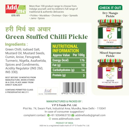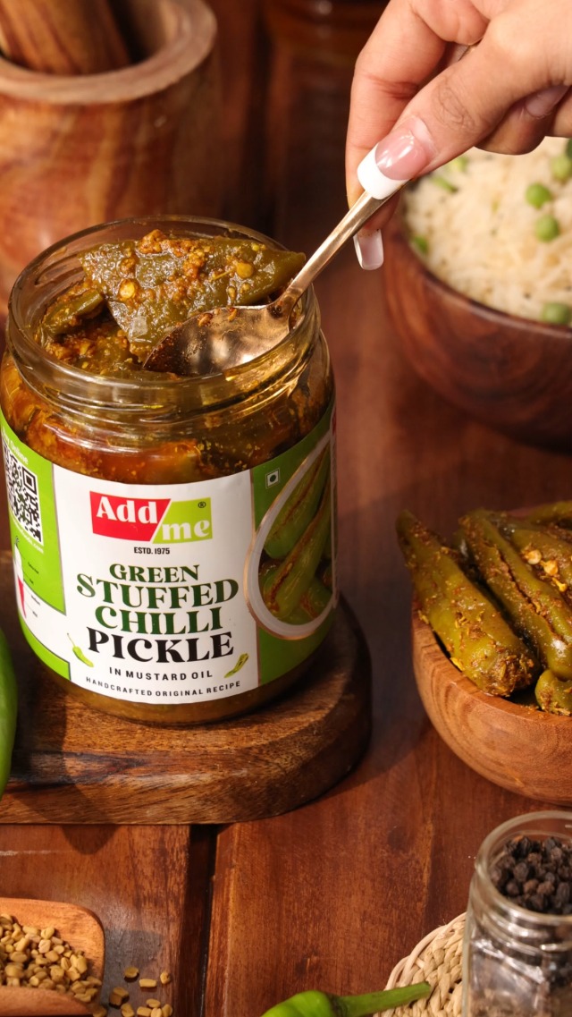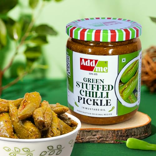 Add me Home Made Stuffed Green Chilli Pickle 500gm Rajasthani Hari mirch ka achar Glass jar