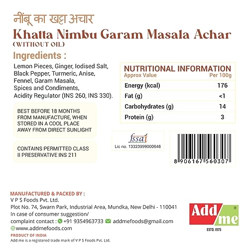 Add me Lemon Lime Pickle Without Oil is aged lemon pickle. sour pickle, khatta Nimbu Ka achar Garam Masala. Lemon Pickle without Oil. typical Ghar wala nimbu ka achar. Its has some ginger shreds as well. feeling bloated, just eat a piece, its a authentic vintage recipe of Lemon pickle, genuine ground spices with a dash of Ginger.