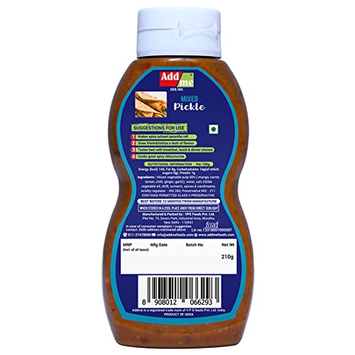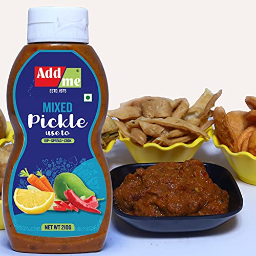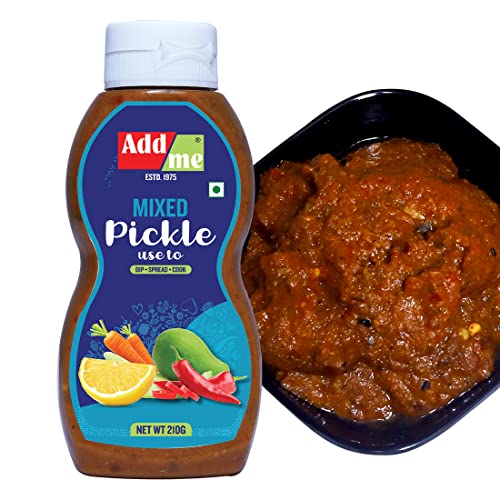 Mixed Pickle in a bottle. spread cook and dip. makes delicious parantha when mixed with dough. savour it with all indian dishes.