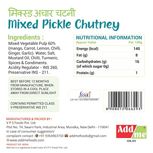 honestly speaking, was bit scared to order online food stuff, that too chutney.But, I must say, it is spot on, literally no change of traditional taste and you cannot taste any additional preservative.Loved the taste, loved the handy packing and the quantity and quality is as promised.