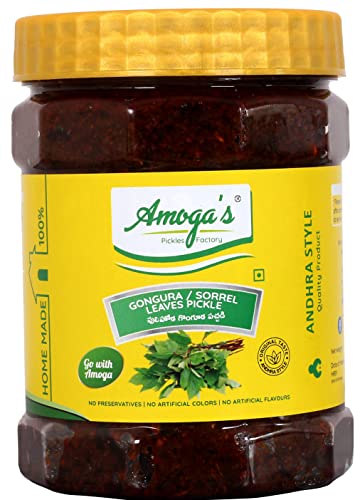 Amoga's Pickles Factory Andhra Authentic Pulihora Gongura Pickle 100% Natural Handmade , 1000gm,Pack of 2 (500gm Each)