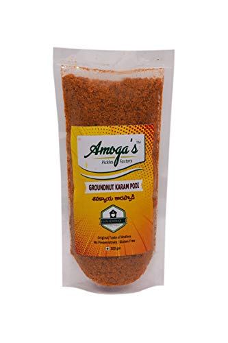 Amoga's present Andhra's Cauliflower Pickle available in mini pack. Eat Healthy Live Healthy.Pickle makes a great accompaniment for idli/dosa/roti/sandwich or rice.This is another unique and essential delicacy from Andhraâs culinary tradition. Groundnut Karam Podi also known as shenga chutney podi is a delicious chutney powder made of peanuts. This nutritious extremely delicious peanut chutney powder makes a great accompaniment for idli/dosa/roti/sandwich or rice And Groundnut Podi or Groundnut powder is a very tasty and easy powder to make. It goes well with almost all the South Indian Breakfast dishes like Dosa Idly Pongal Poha Upma etc. Groundnut powder Steamed Rice and a spoon of melted Ghee is a ultimate easy dish to relish.