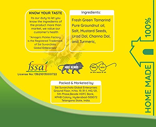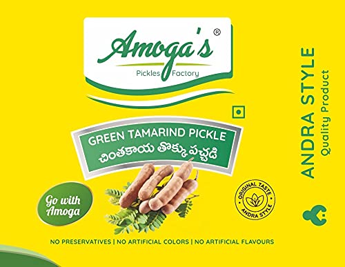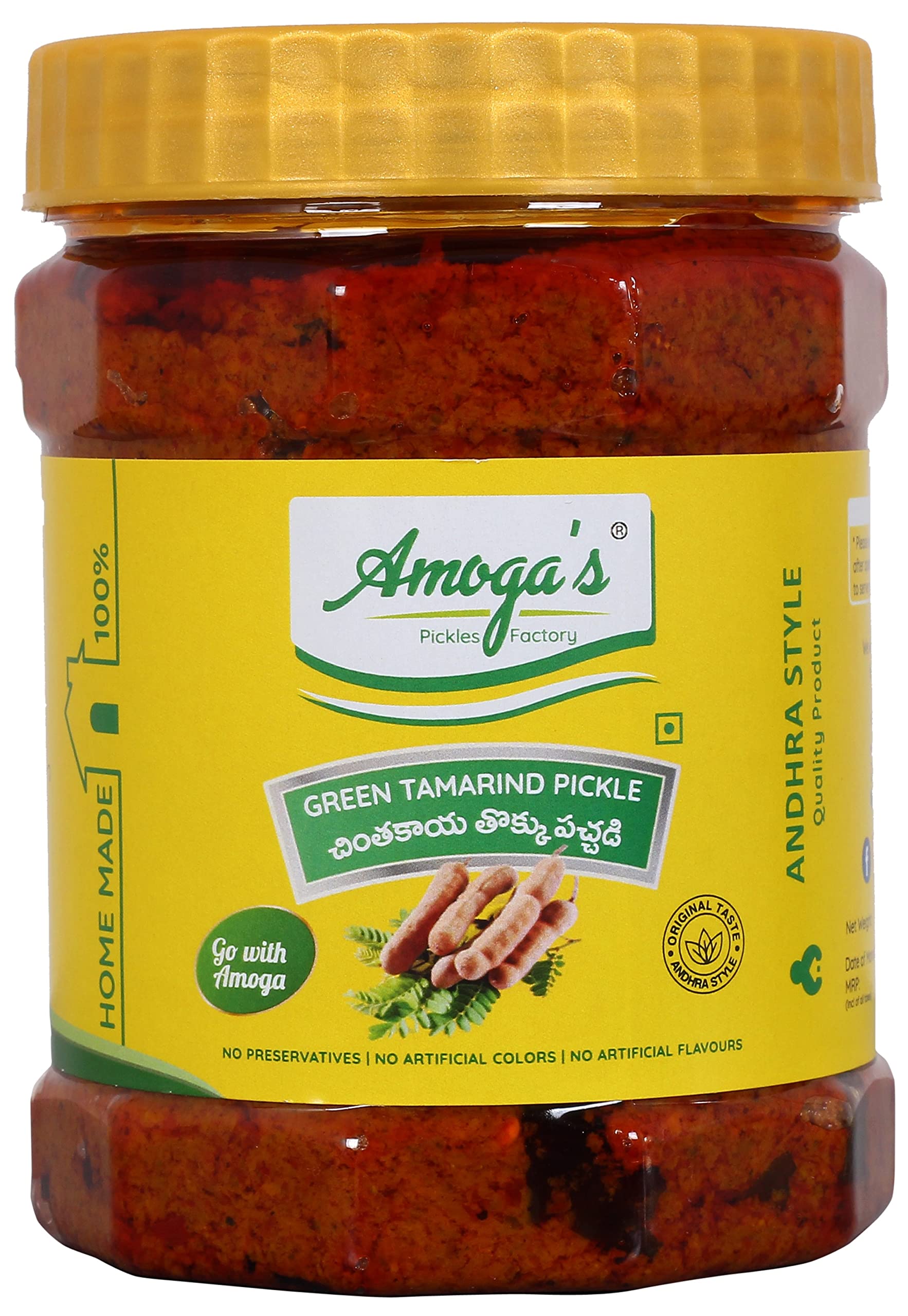 Amoga's Pickles Factory Andhra Fresh Green Tamarind Pickle / Chintakaya Thokku Pachadi / Kachha Imli Aachar (500)
