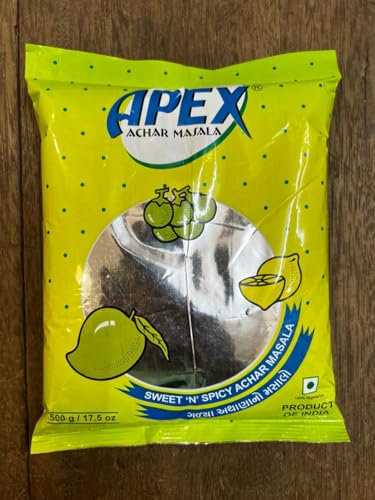 APEX A FAMOUS FOR PURITY Can be used For all Type of Pickles. Authentic taste easy to make - Receipe on the packet. asy to prepare. Detailed instructions given at the back of the pack. Approximately 1kg pickles can prepared using every 100g of pickle masala. It can be used to make almost every Pickle such as Mango (Aam) Pickle Lemon (Nimbu) Pickle Ker Pickle Lasoda (Gunda) Pickle and many more. USES FOR:- Mango / Aam ka achar Lemon achar Mirch achar Mix Vegetables achar etc