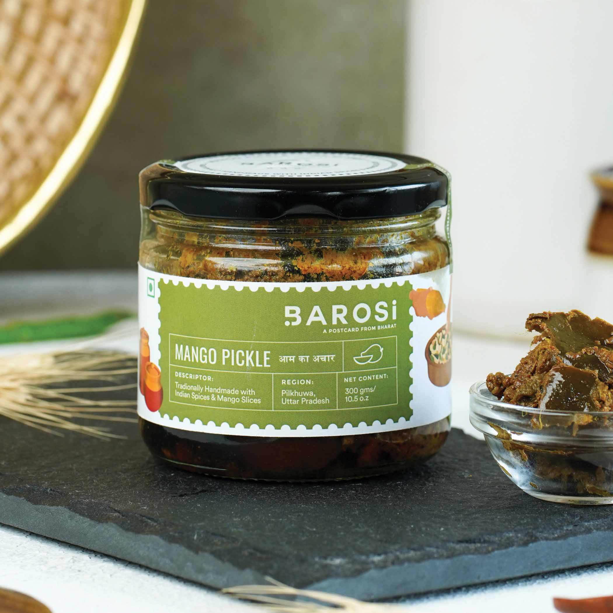 Traditionally Handmade: Barosi Mango Pickle is hand made using traditional age-old methods with Indian spices and raw mango slices