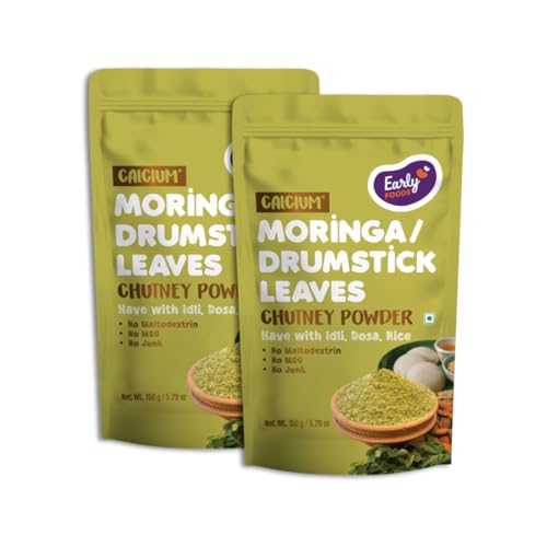 Early Foods - Pack of 2 Moringa Chutney Powder | South Indian Moringa Idli Chutney Powder | Drumstick leaves chutney powder | Molaga Podi | Gunpowder Podi, Perfect for Idli Dosa Roti & Rice 300 gms