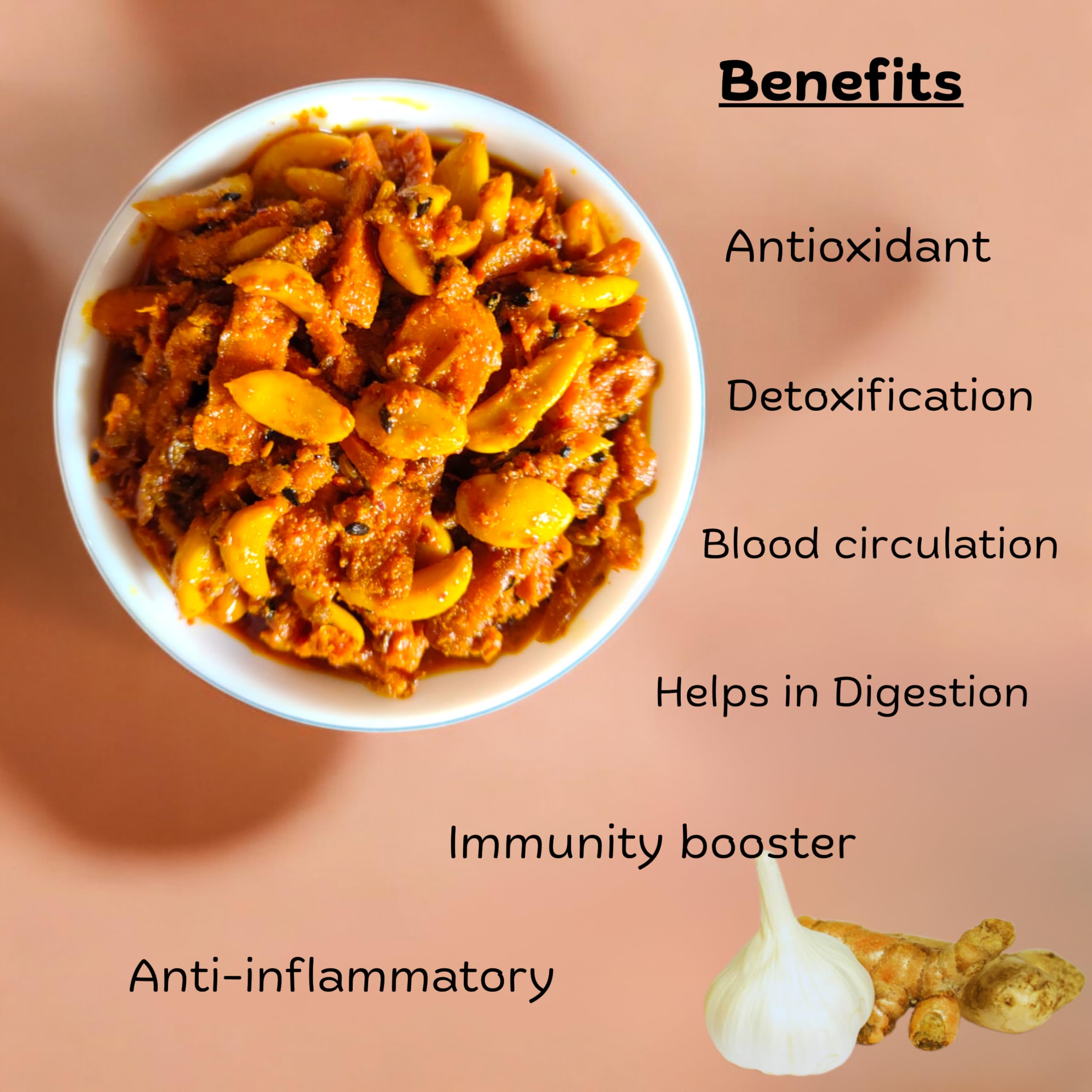 Haldi Lahsun Pickle A Spicy Tangy Delight Experience the vibrant flavor of Haldi Lahsun Pickle a traditional Indian pickle made with turmeric (haldi) and garlic (lahsun). This tangy and aromatic pickle combines the earthy goodness of turmeric with the bold punch of garlic creating a perfect accompaniment to any meal. Key Benefits: Boosts Immunity: Turmeric is known for its anti inflammatory properties while garlic supports digestive health. Bold Flavor: A delightful mix of spicy tangy and earthy flavors that elevate any dish. Versatile: Perfect with roti rice paratha or even as a flavorful dip. Add Haldi Lahsun Pickle to your meals and enjoy the rich taste and health benefits of this traditional Indian favorite!