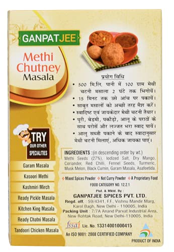 Ganpatjee Methi Chutney Lonji Masala250g | Pack Of 125g x 2 | Easy To cook Bedmi aloo Sabzi Chutney Old Delhi Taste