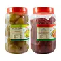 A combo pack of Amla Murabba Dry and Carrot Murabba Dry which curates the health benefits of both of these! Both of these Murabbas are our best selling items and there's simply no way you can resist yourself from eating these all day long. Amla is a miracle fruit that holds the place of pride in Ayurveda. This neon-green colored fruit murabba packs numerous health benefits and contains Polyphenols Vitamin C Vitamin A Calcium Magnesium and Iron among others. Rich in Vitamin A Carrot Murabbas are the best in treating eye diseases and vision problems. Being a good source of nutrients Carrot Murabbas are also beneficial for general debility weakness fatigue and mental stress. Both of these Murabbas possess a delicious sweet taste and their perfectly sized pieces can be served to people of all ages - to children in their lunch boxes as well as to aged people in their breakfast. These syrup-less Murabbas are ready to eat right out of the box. This combo pack comes in a set of 2 durable plastic PET jars.