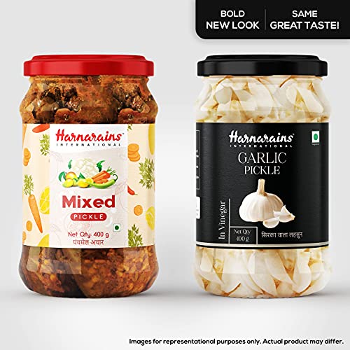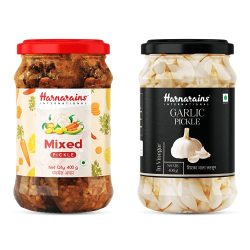 Harnarains Mixed Pickle & Garlic Pickle in Vinegar 400 gm (Pack of 2)