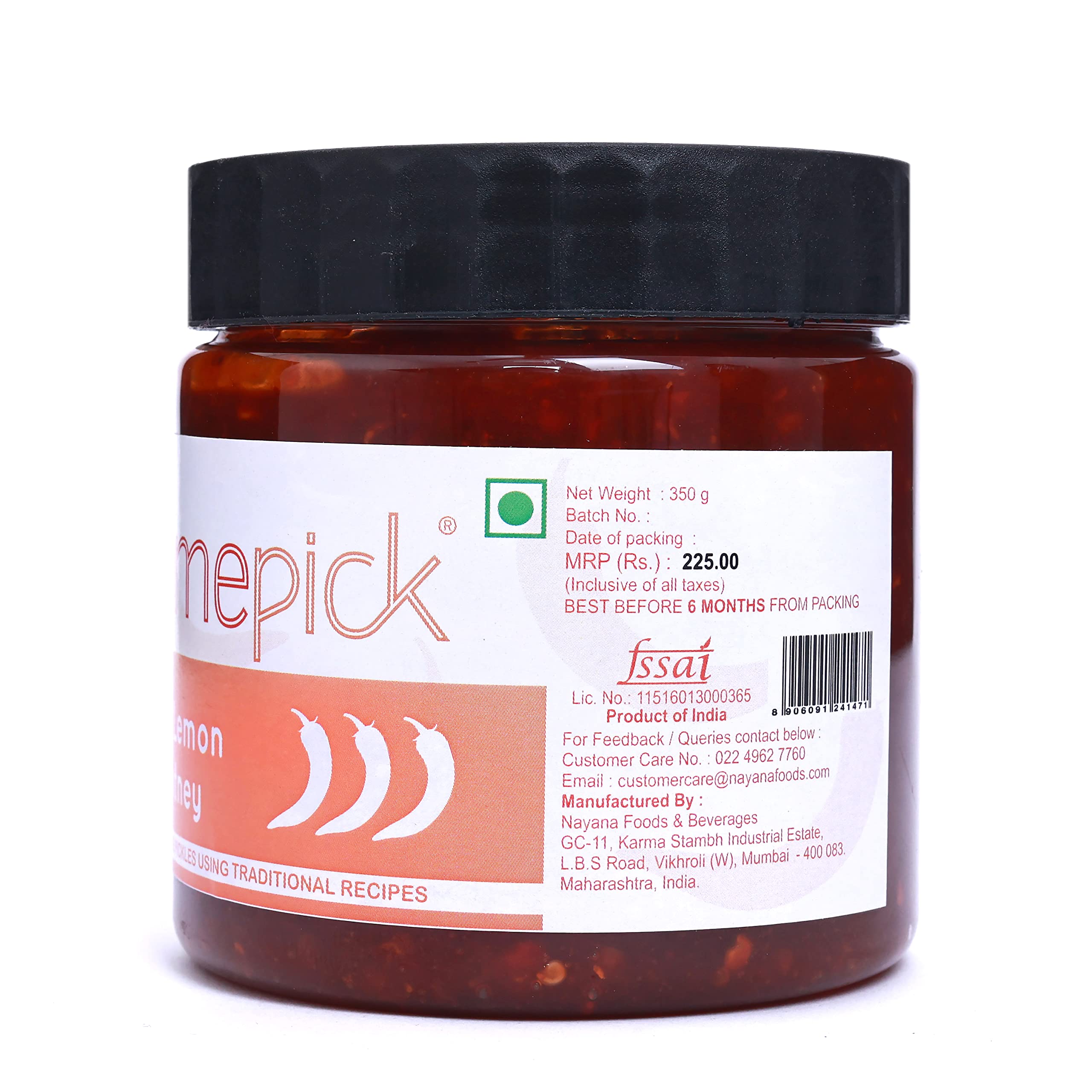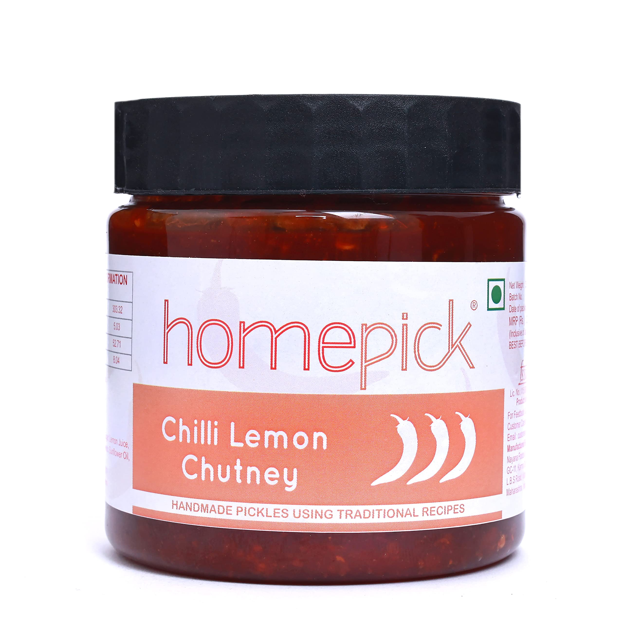 Is it spicy? No no it is sweet....No wait its tangy. Yes its all three together. Goes with just about every kind of food Homepick's Chilli Lemon Chutney is made from premium kashmiri red chillis lemons and sugar. We bet you will keep coming back for more. All our pickles are handmade using the most pure and premium quality ingredients be it mangoes, lemons, chillis, oil or spices. We make over thirty different varieties of pickles which range from the conventional to the most unique varieties of pickles consisting of sweet to sour to spicy to tangy recipes catering to each and every palate. Our variants include several regional specialties of India like the Gujarati Chhundo and Gol Keri, Rajasthani Ker Sangri, Andhras Avakkai Mango, Maharashtrian Thecha, Kolkatta Pickle and many others.