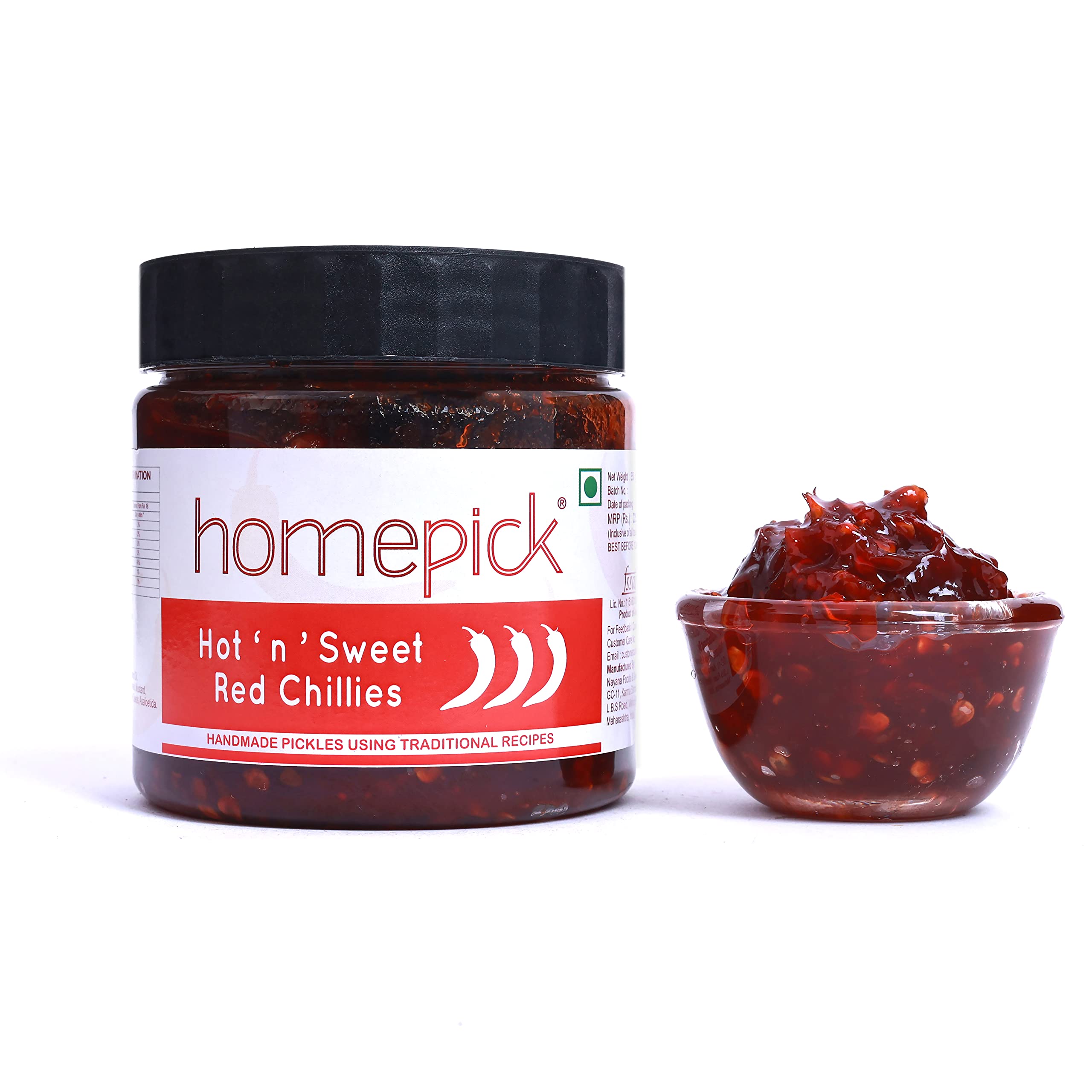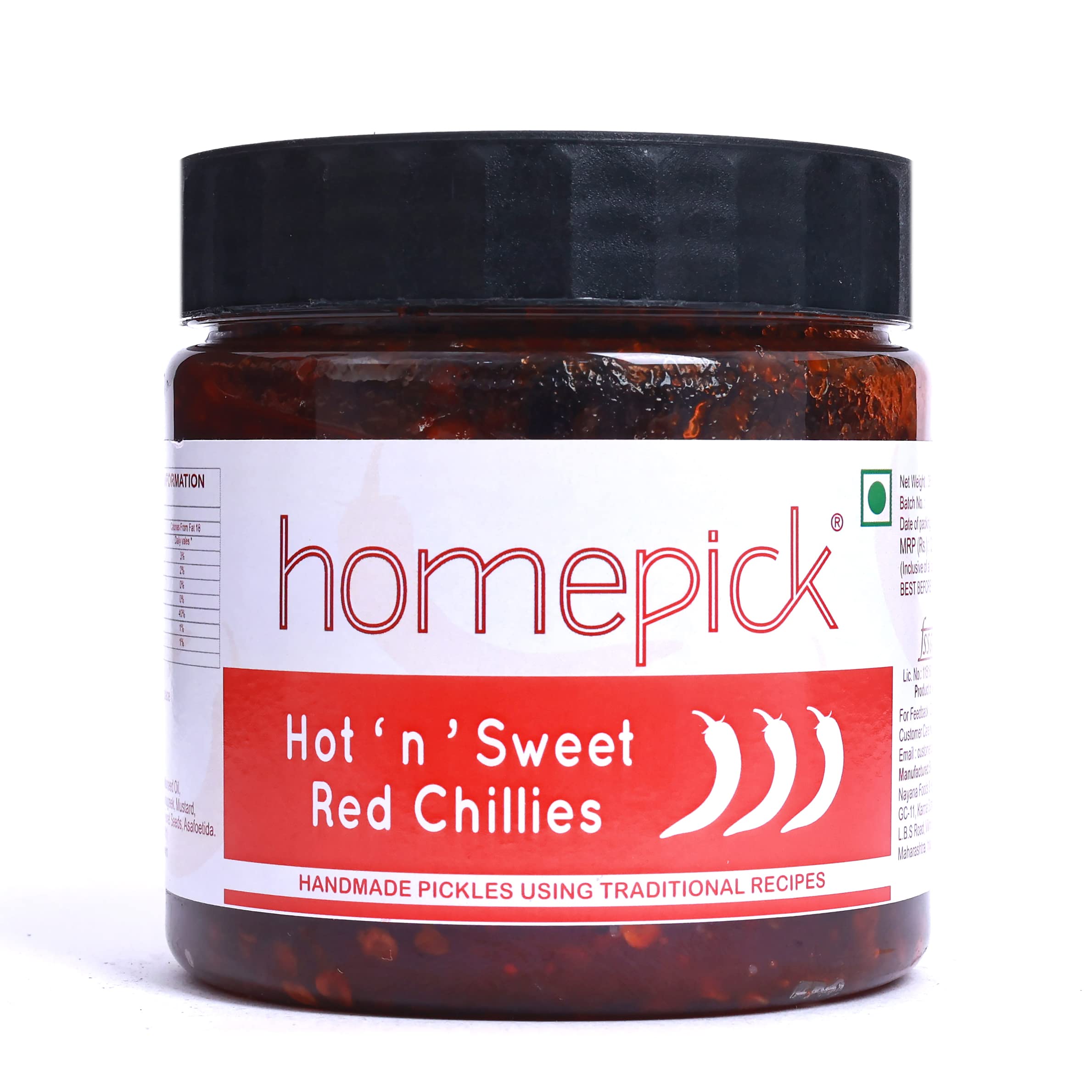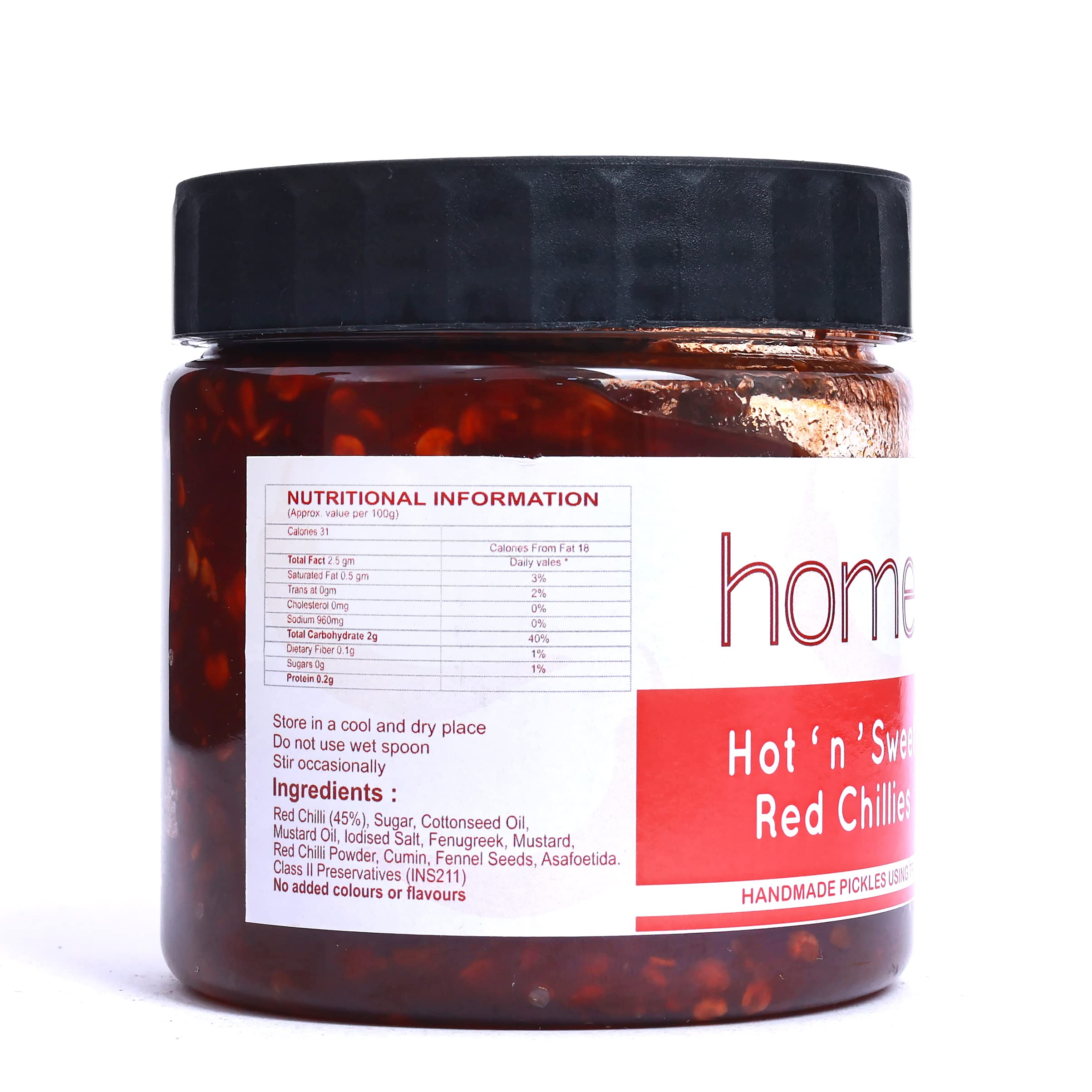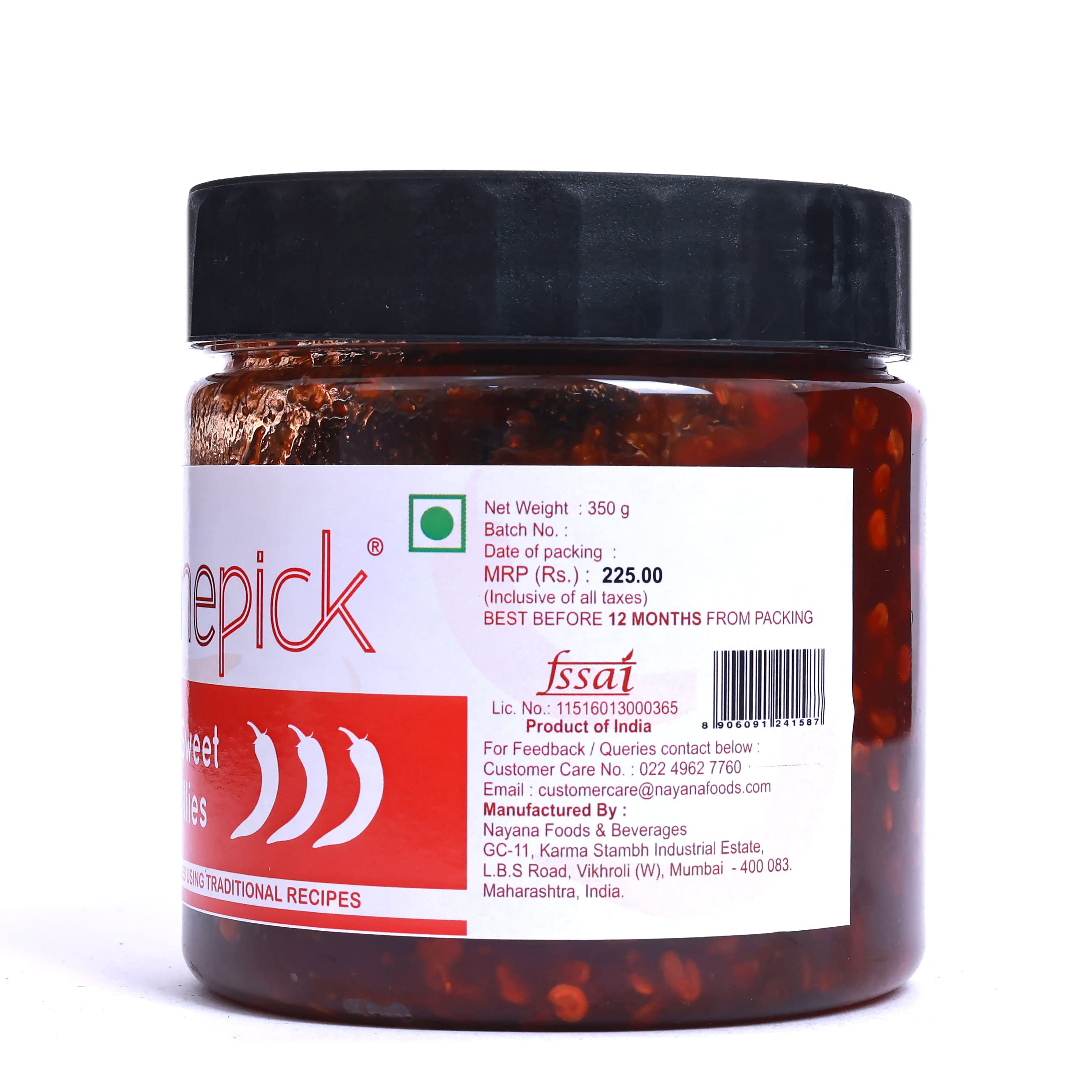 Enjoy a hot and sweet blend of handpicked red chillies and sugar. This one packs a punch and will leave you wanting for more. Enjoy with almost every dish be it parathas khichdi dal rice or even over a slice of bread. All our pickles are handmade using the most pure and premium quality ingredients be it mangoes, lemons, chillis, oil or spices. We make over thirty different varieties of pickles which range from the conventional to the most unique varieties of pickles consisting of sweet to sour to spicy to tangy recipes catering to each and every palate. Our variants include several regional specialties of India like the Gujarati Chhundo and Gol Keri, Rajasthani Ker Sangri, Andhras Avakkai Mango, Maharashtrian Thecha, Kolkatta Pickle and many others.